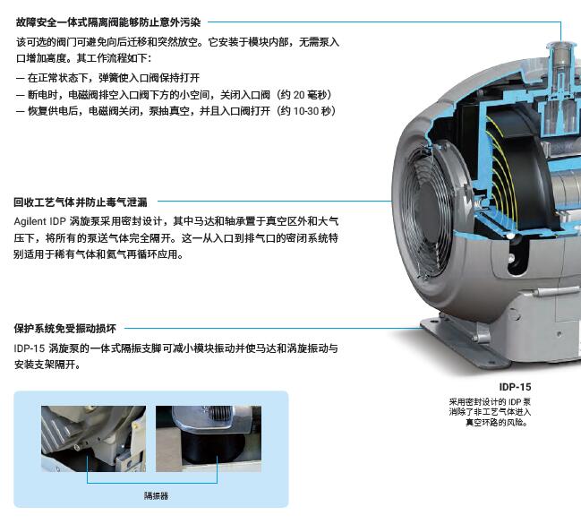 安捷倫干式 IDP 渦旋泵為無油、緊湊型、噪音小的高性能真空泵。IDP 泵采用單面渦輪設計,可通過簡單的工具直接執行 15 分鐘的維護操作