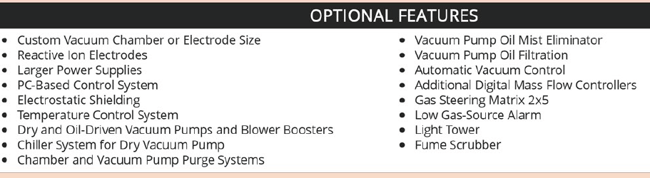 BT-1適用于工業(yè)級(jí)等離子處理,可用于等離子清洗,等離子刻蝕,反應(yīng)離子刻蝕等等。BT-1具有大的處理腔及樣品架,非常適用于半導(dǎo)體,電子,太陽能,PCB等工業(yè)生產(chǎn)領(lǐng)域,對(duì)于那些希望等離子處理低成本且高效率的客戶也同樣使用。