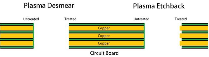 等離子體刻蝕后不僅清洗殘留在銅聚酰亞胺或FR4環氧的盲孔過程中,但它也銘刻在聚酰亞胺和環氧材料。這允許對焊料或其它導電材料進行多表面粘合。